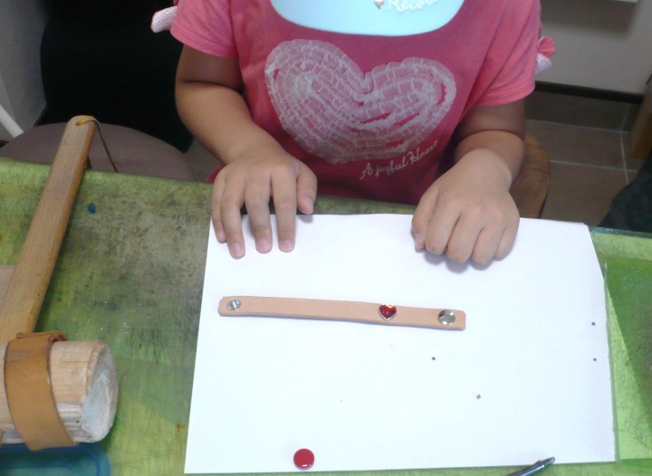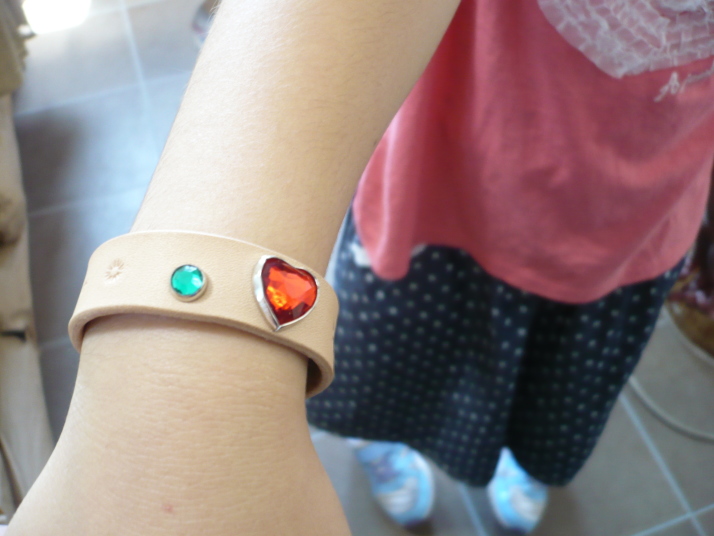 (革の色や飾りの種類、名前の入れ方など、色々選んで作っていきます)